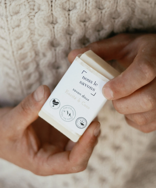 Ingrédients INCI: sodium shea butterate*, sodium sunflowerseedate*², sodium cocoate*, sodium rapessedate*², glycerin, aqua.